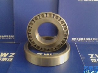圓錐滾子軸承的內、外圈具有錐形滾道,滾道之間裝有錐形滾子。若將錐形面延伸,最終會聚于軸承軸線上一點。圓錐滾子軸承主要用于承受以徑向載荷為主的徑向,軸向聯合載荷。軸承的軸向承載能力由接觸角決定,越大,軸向承載能力越大.圓錐滾子軸承為分離型軸承,帶滾子和保持架的內圈構成內組件,能與外圈分開安裝。 該類軸承主要用途:汽車前輪、后輪、變速器、差速器、小齒輪軸,機床主軸,建筑機械,大型農業機械,鐵路車輛齒輪減速裝置,軋鋼機輥頸小減速裝置。